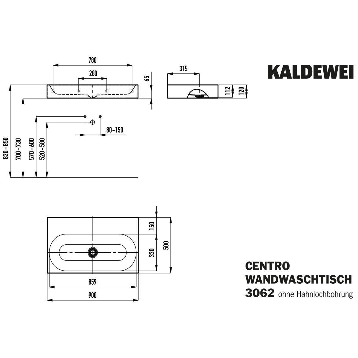 Kaldewei Centro Waschbecken 90x50 cm rechteckig Klassisch weiß 903506003001