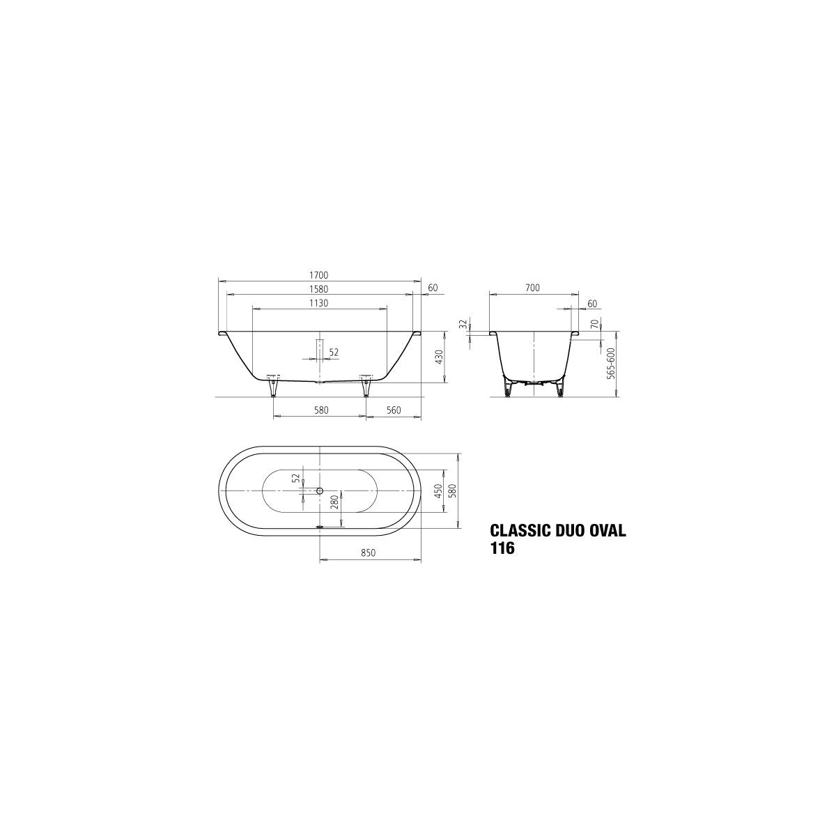 Kaldewei Classic Duo Oval Ovale Badewanne 170x70 cm oval weiß 292610110001