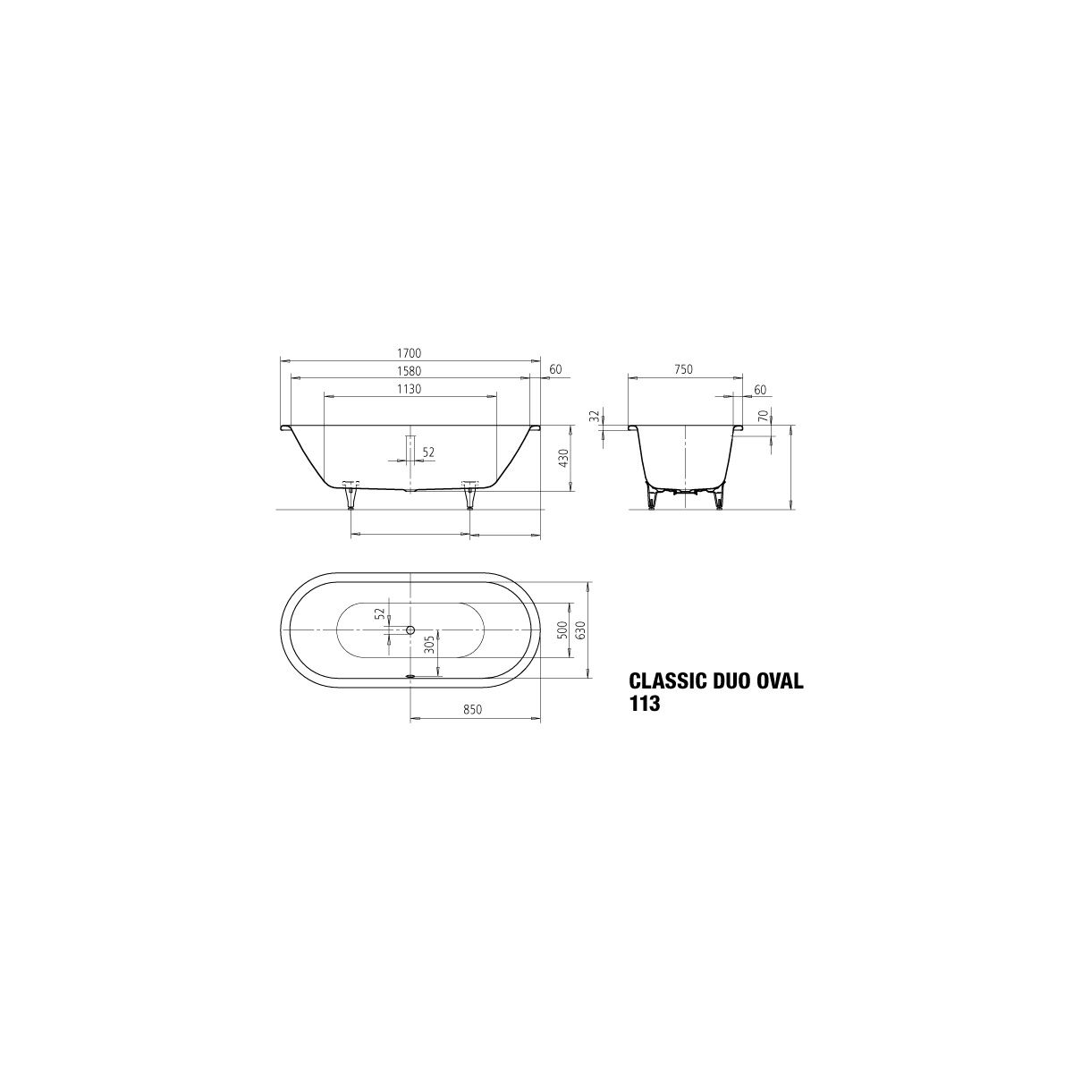 Kaldewei Classic Duo Oval Ovale Badewanne 170x75 cm oval weiß 291410110001