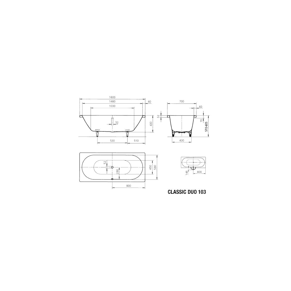 Kaldewei Classic Duo Rechteckige Badewanne 160x70 cm weiß 290300013001