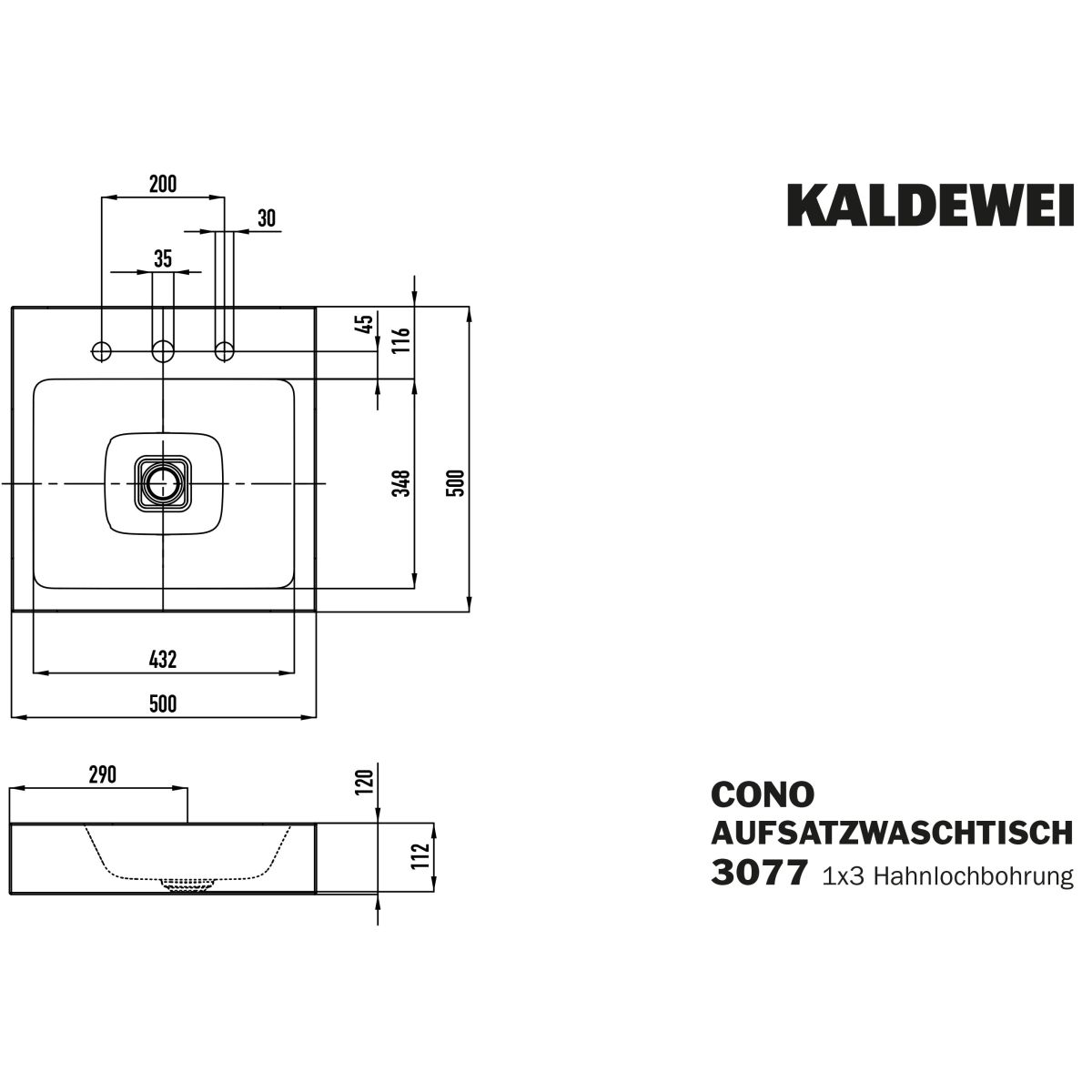 Kaldewei Cono Waschbecken 50x50 cm quadratisch Aufsatzwaschbecken weiß 908406033001