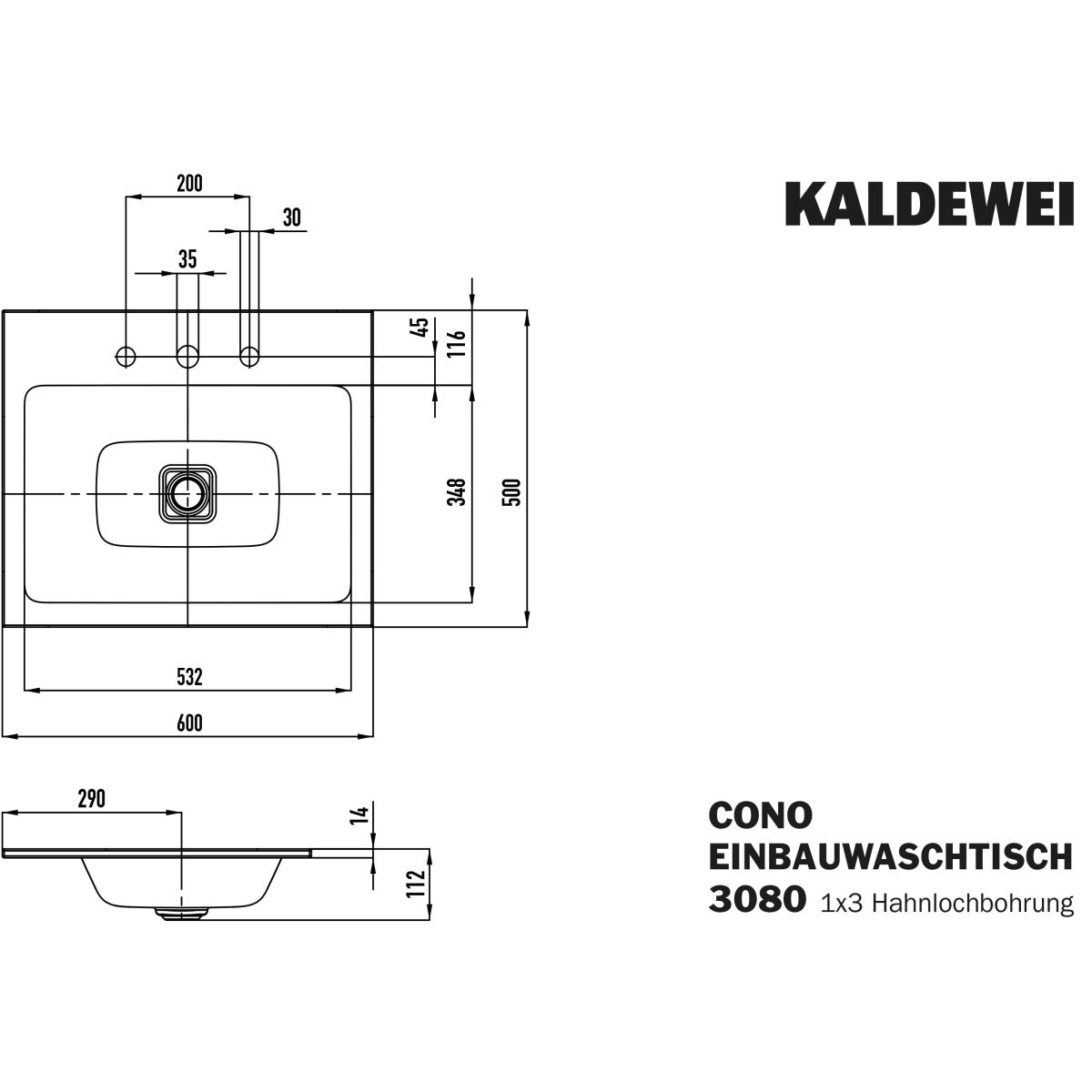 Kaldewei Cono Waschbecken 60x50 cm rechteckig Einbauwaschbecken weiß 901606033001