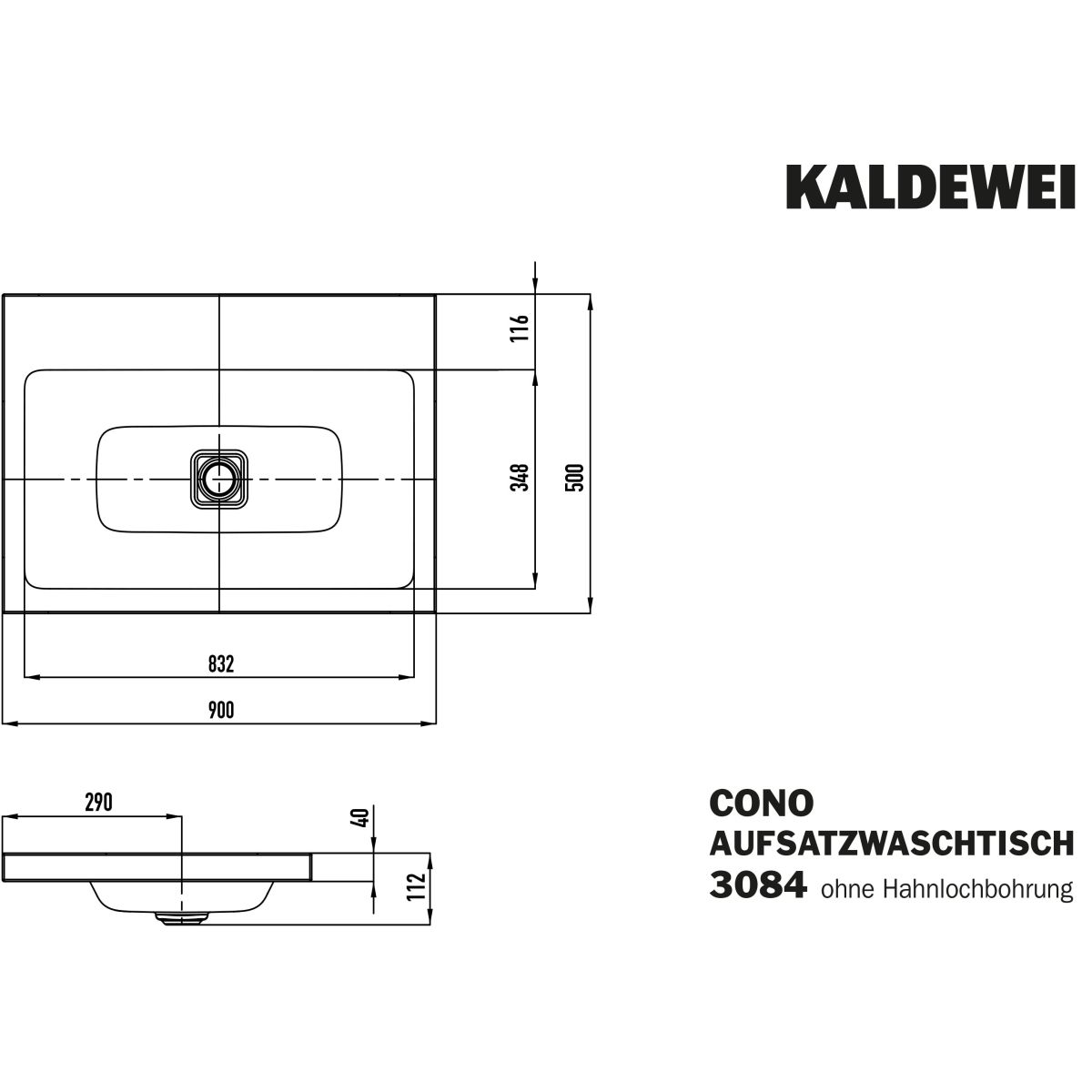 Kaldewei Cono Waschbecken 90x50 cm rechteckig Aufsatzwaschbecken weiß 902006003001