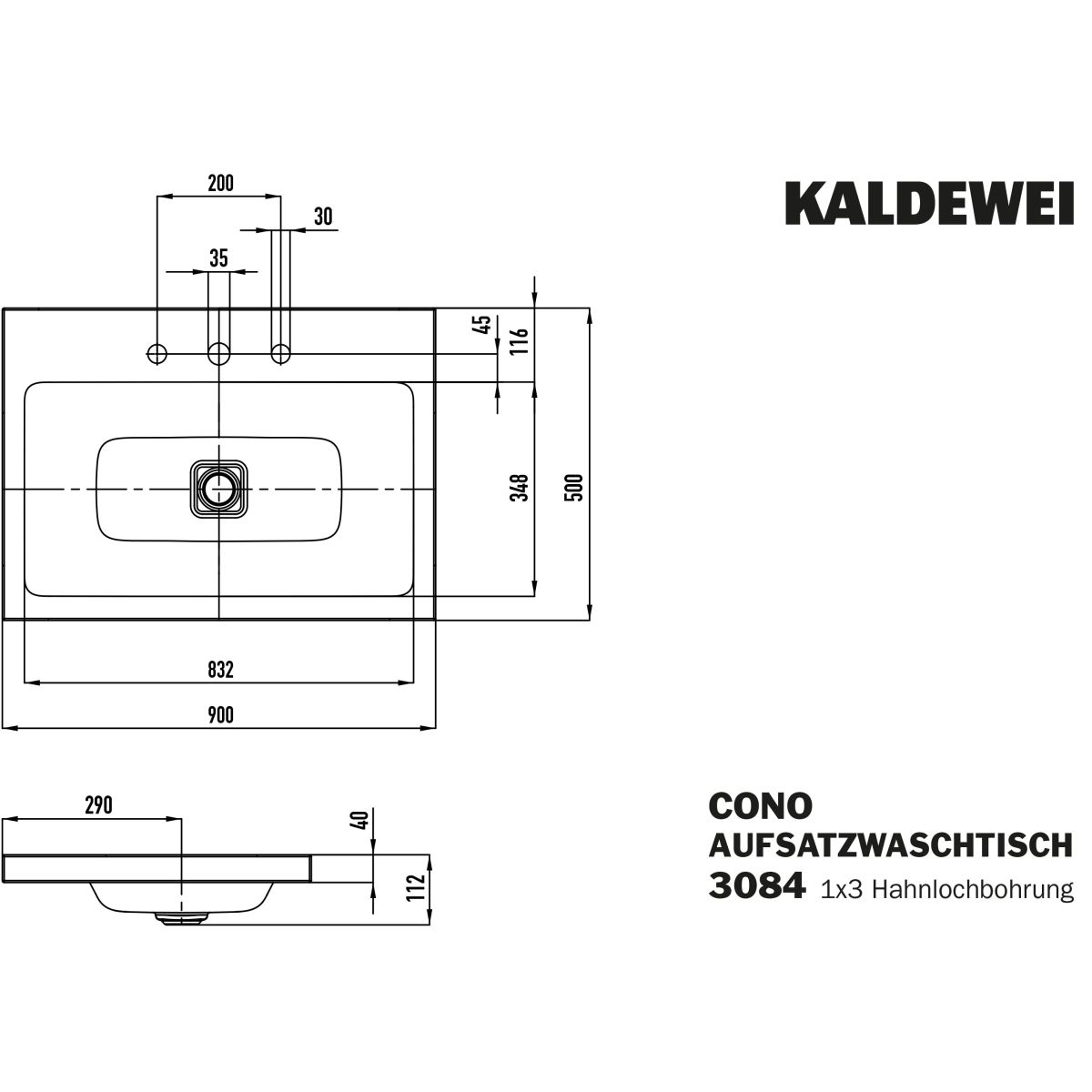 Kaldewei Cono Waschbecken 90x50 cm rechteckig Aufsatzwaschbecken weiß 902006033001