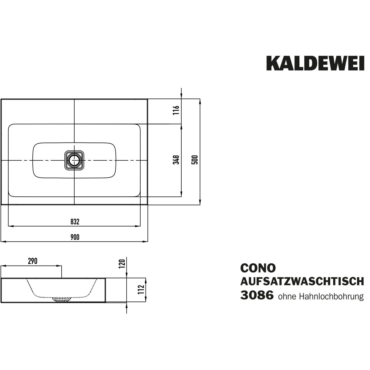 Kaldewei Cono Waschbecken 90x50 cm rechteckig Aufsatzwaschbecken weiß 902206003001