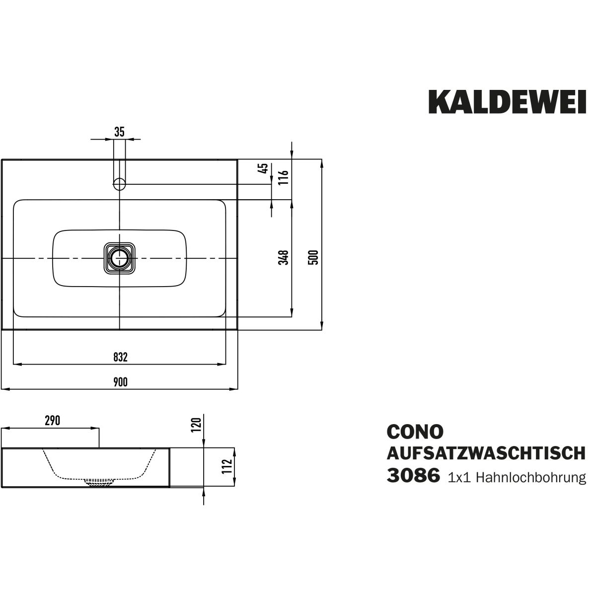 Kaldewei Cono Waschbecken 90x50 cm rechteckig Aufsatzwaschbecken weiß 902206013001
