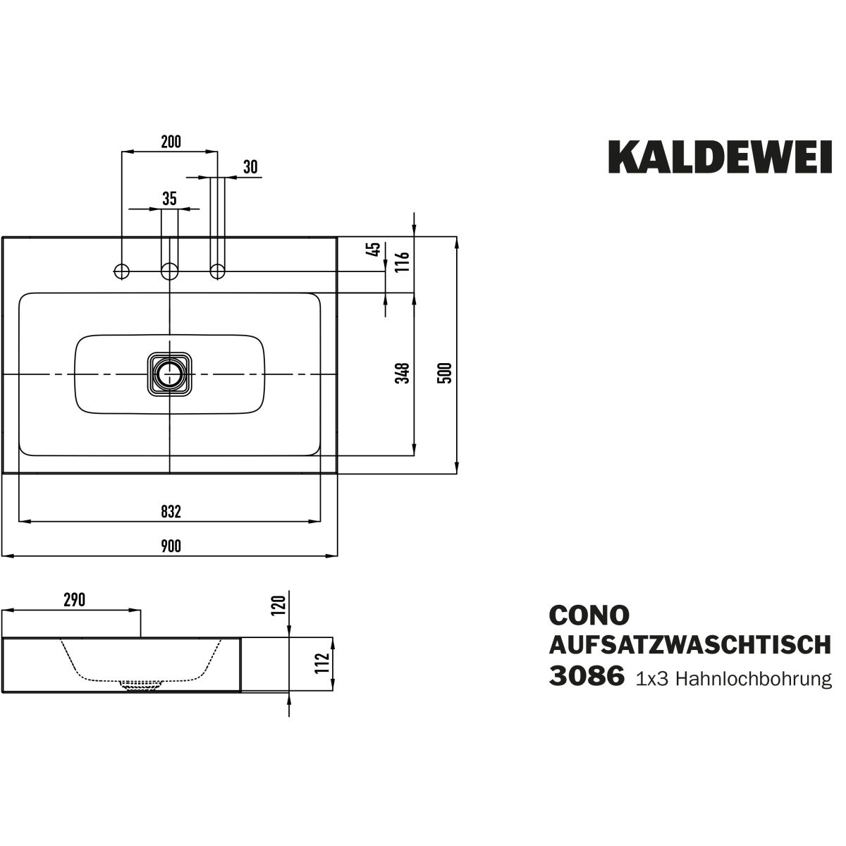 Kaldewei Cono Waschbecken 90x50 cm rechteckig Aufsatzwaschbecken weiß 902206033001
