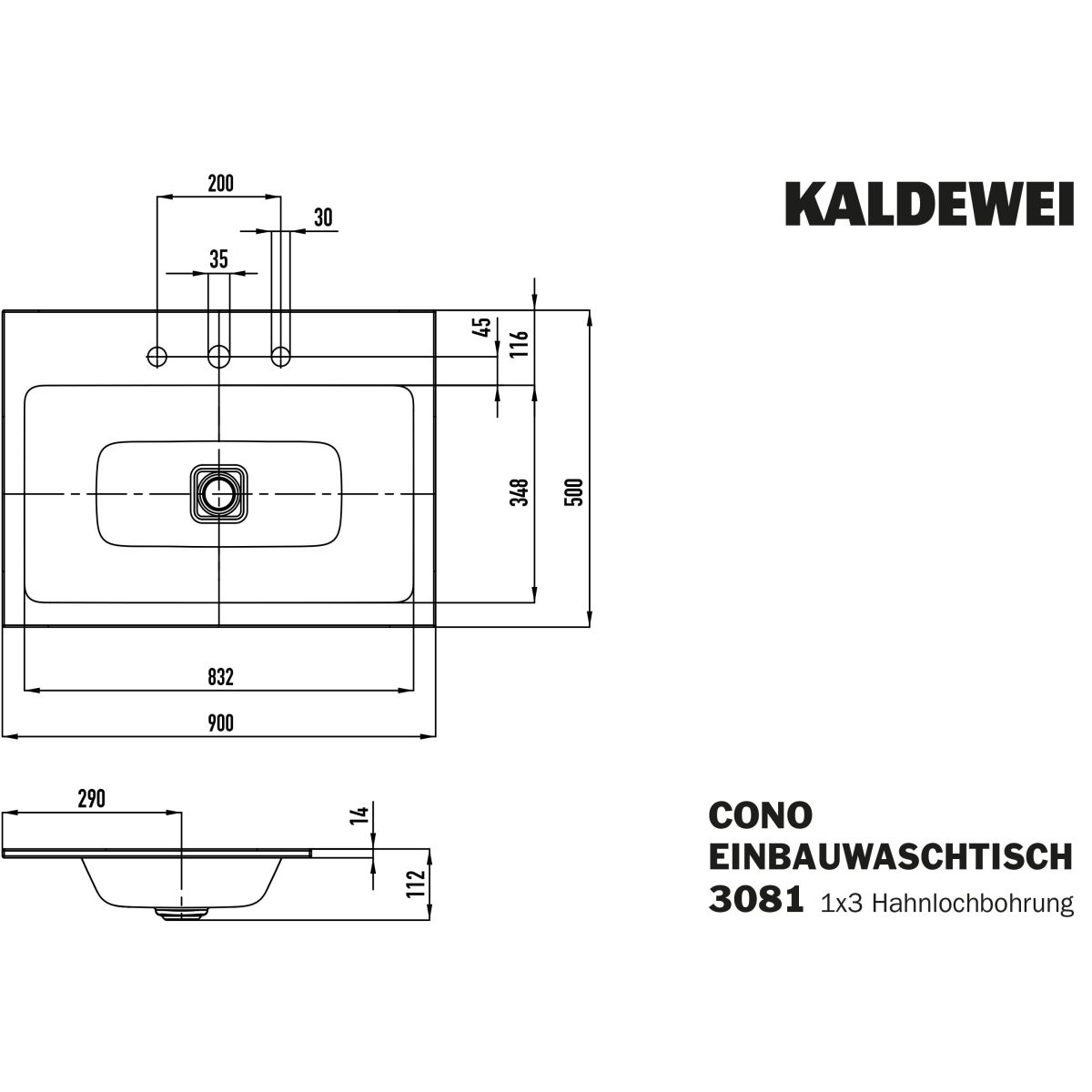 Kaldewei Cono Waschbecken 90x50 cm rechteckig Einbauwaschbecken weiß 901706033001
