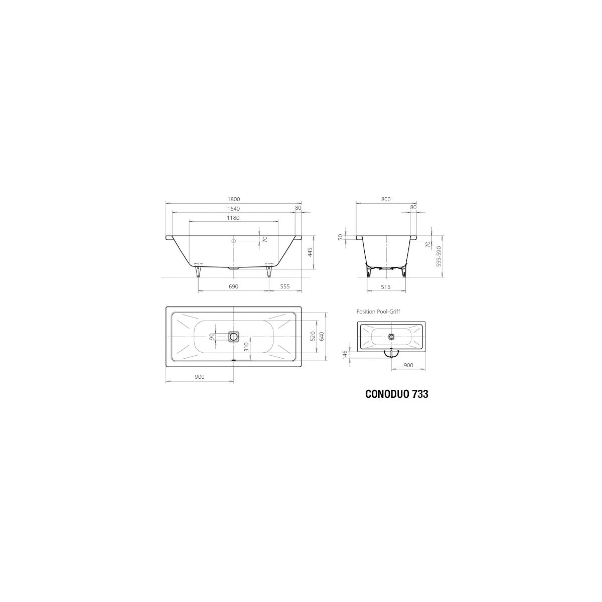 - klassische rechteckige Badewanne