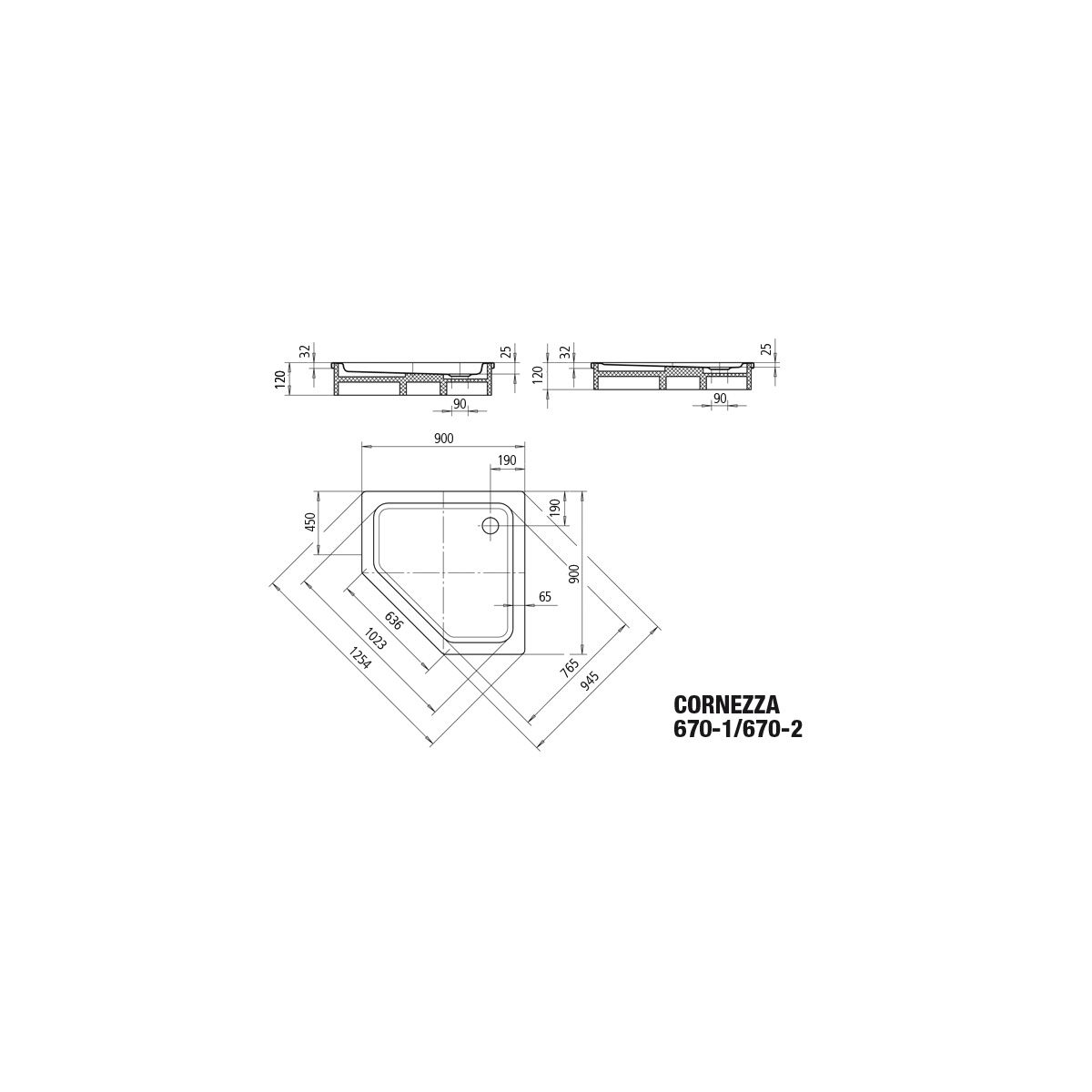 Kaldewei Cornezza Fünfeckige Duschwanne 90x90 cm weiß 459048040001