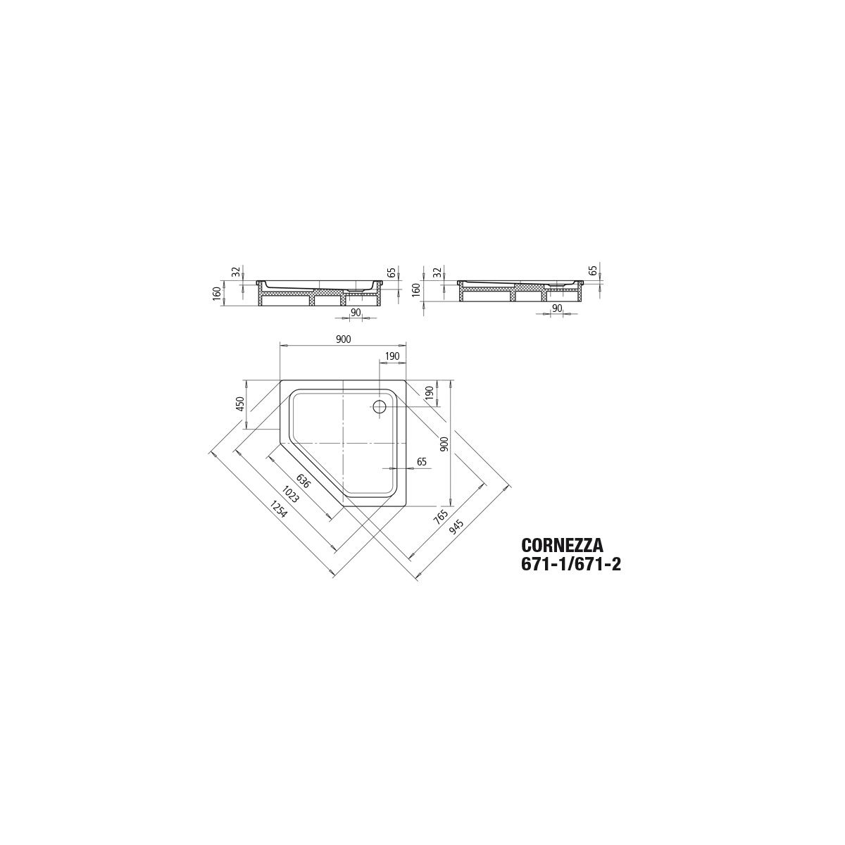 Kaldewei Cornezza Fünfeckige Duschwanne 90x90 cm weiß 459148040001