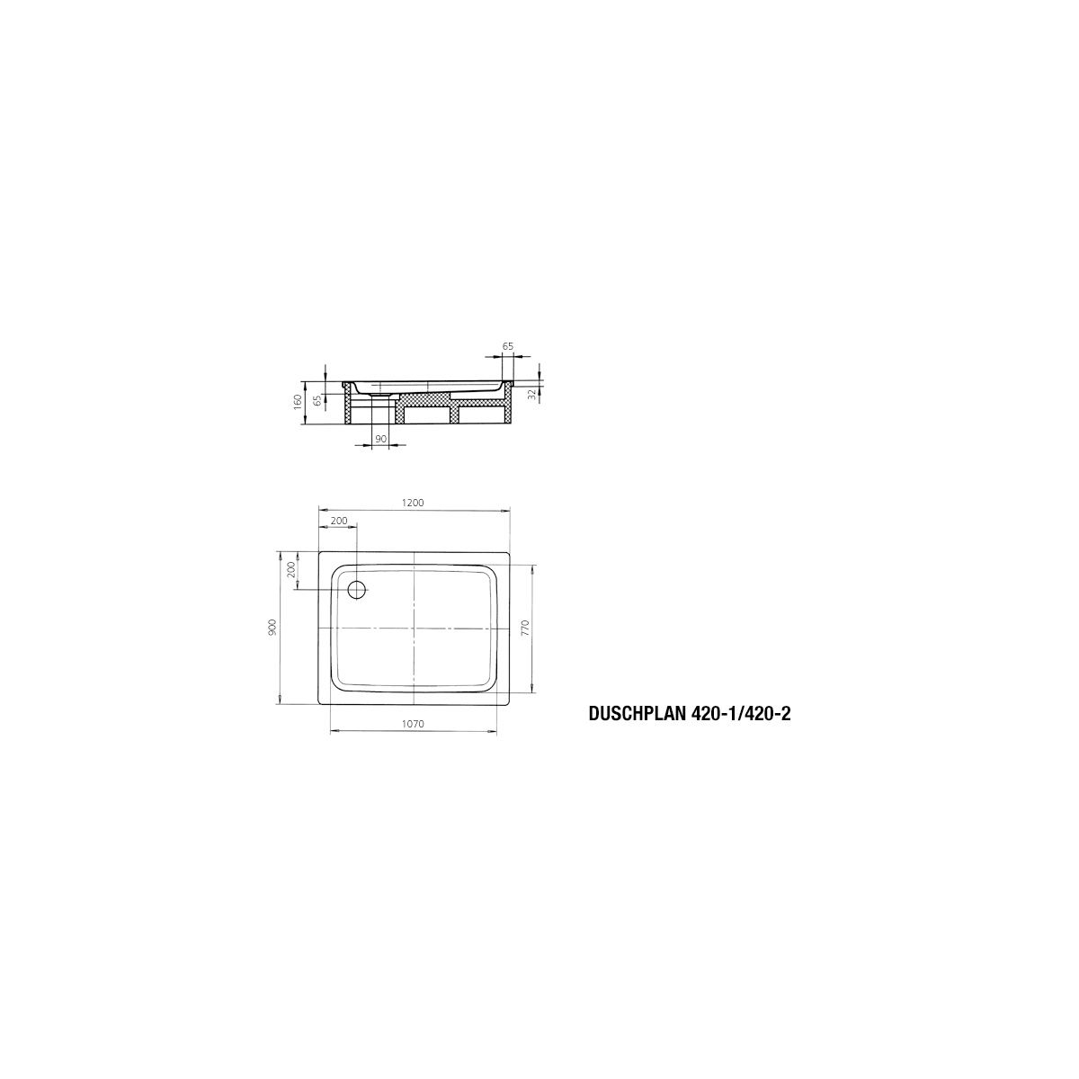 Kaldewei Duschplan Rechteckige Duschwanne 120x90 cm weiß 432048040001