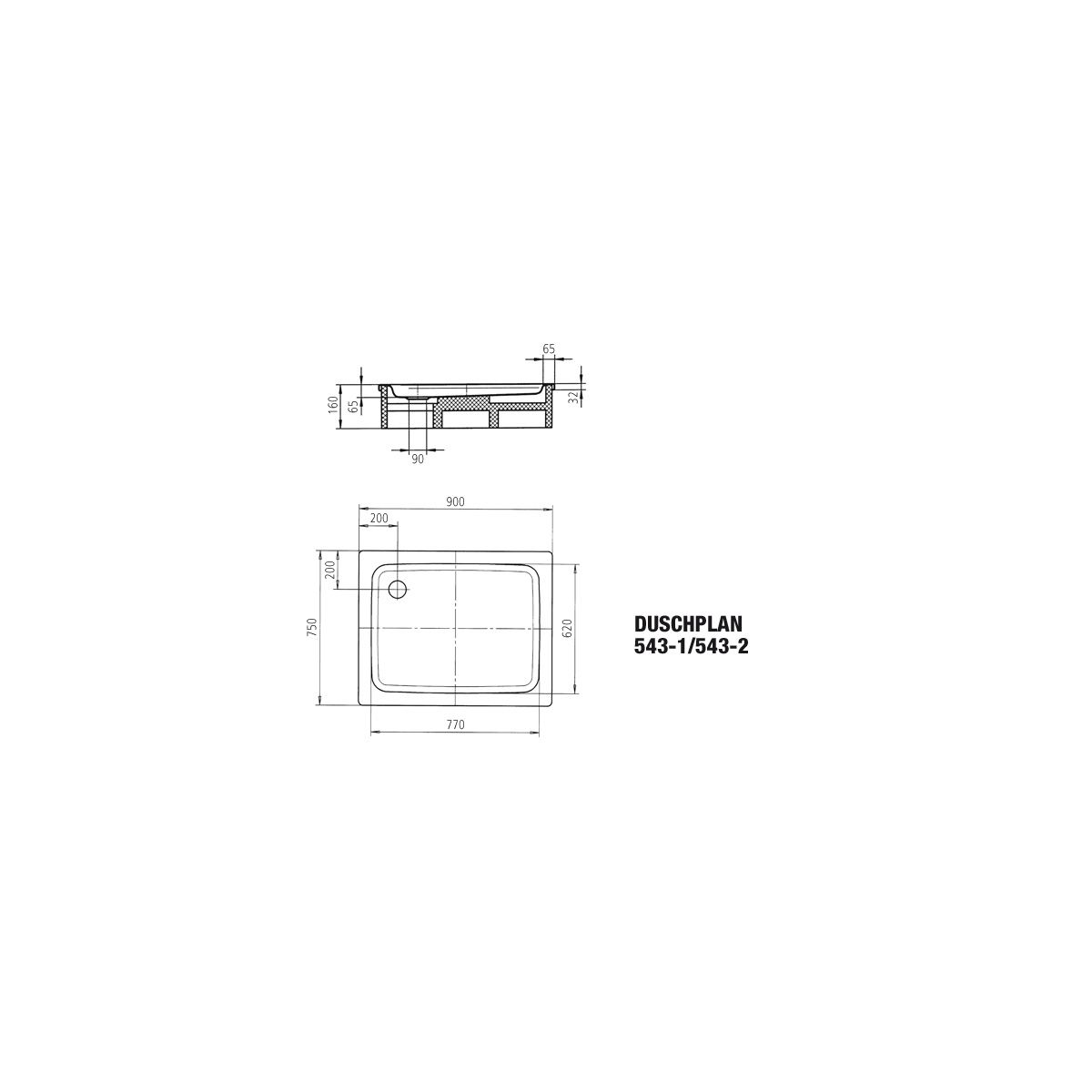 Kaldewei Duschplan Rechteckige Duschwanne 90x75 cm weiß 440900010001