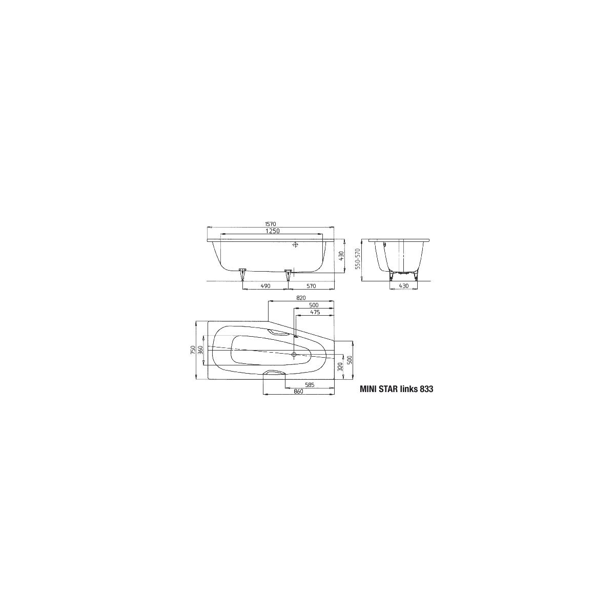 Kaldewei Mini Star Eckbadewanne 157x75 cm linksseitig weiß 224900010001