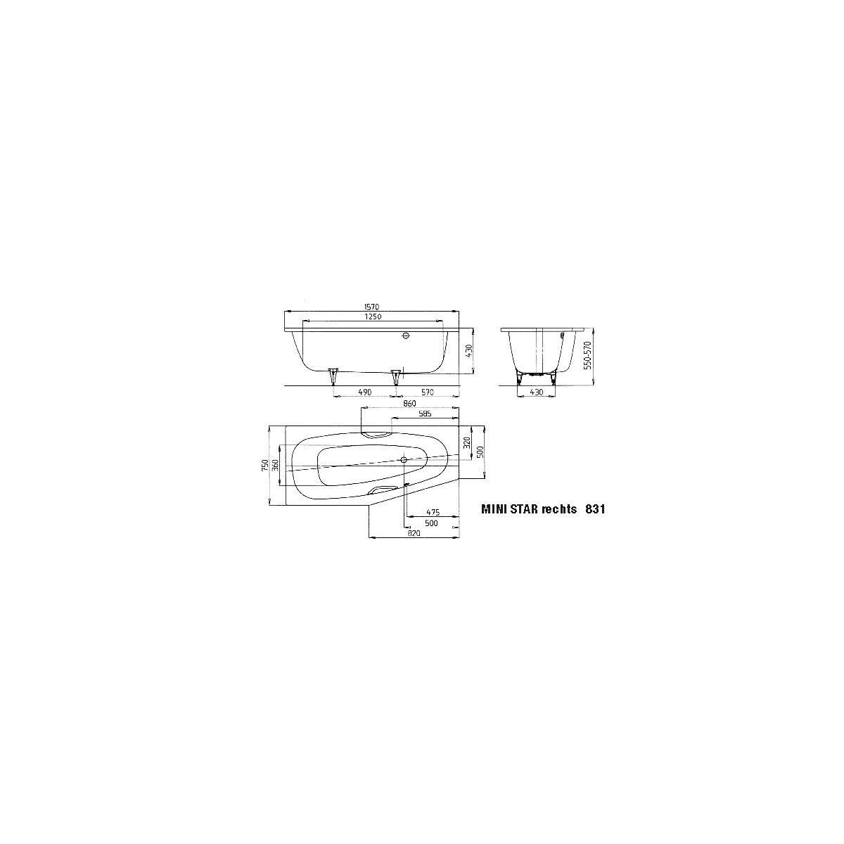 Kaldewei Mini Star Eckbadewanne 157x75 cm rechtsseitig weiß 224700010001