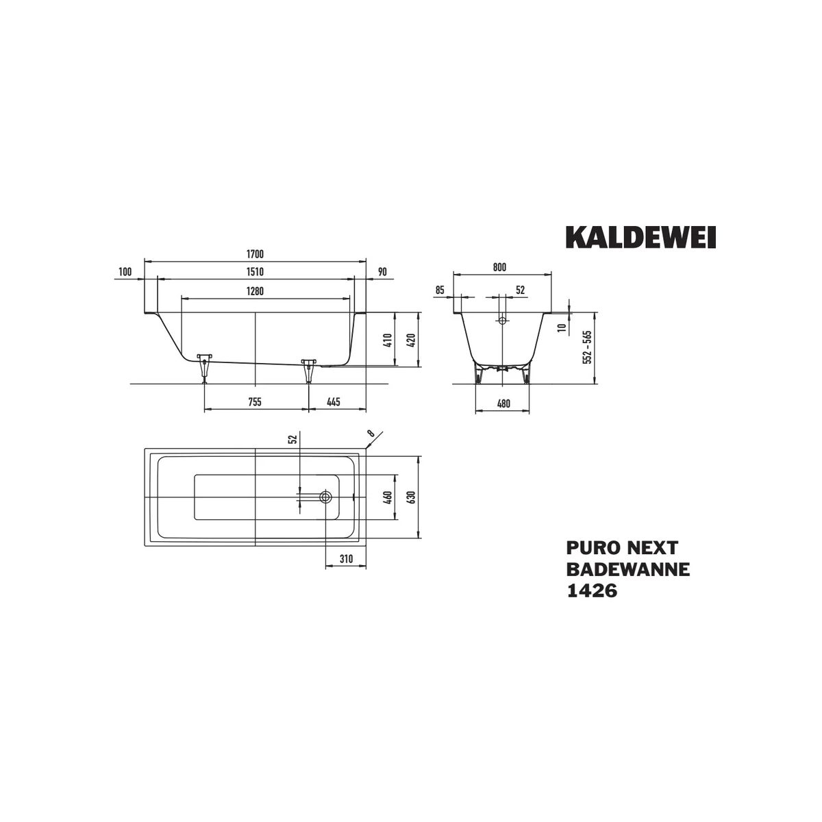 Kaldewei Puro Next Rechteckige Badewanne 170x80 cm weiß 142600011001