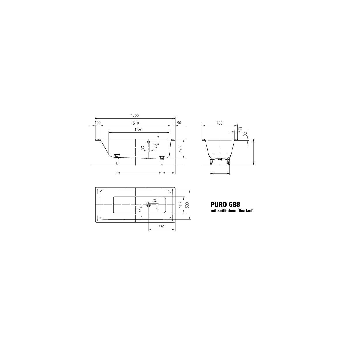 Kaldewei Puro Rechteckige Badewanne 170x70 cm weiß 258800010001