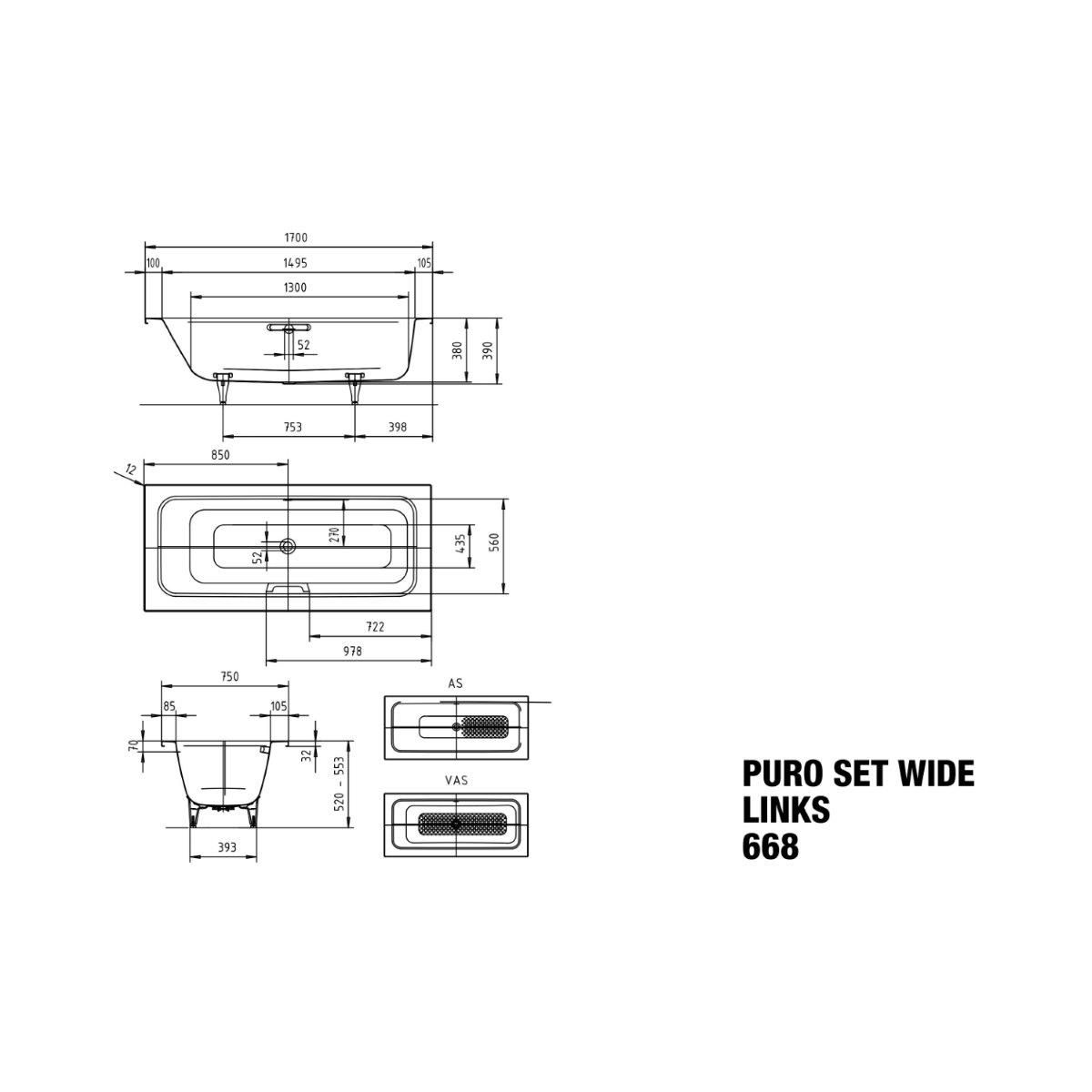 Die wichtigsten Merkmale der PURO SET WIDE Badewanne: