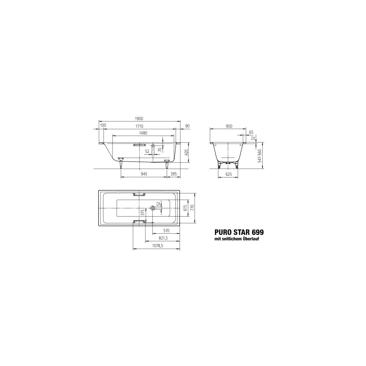 Kaldewei Puro Rechteckige Badewanne 190x90 cm weiß 259900010001