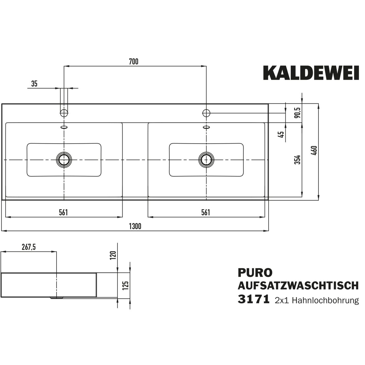 Kaldewei Puro Waschbecken 130x46 cm rechteckig Aufsatzwaschbecken weiß 907206043001
