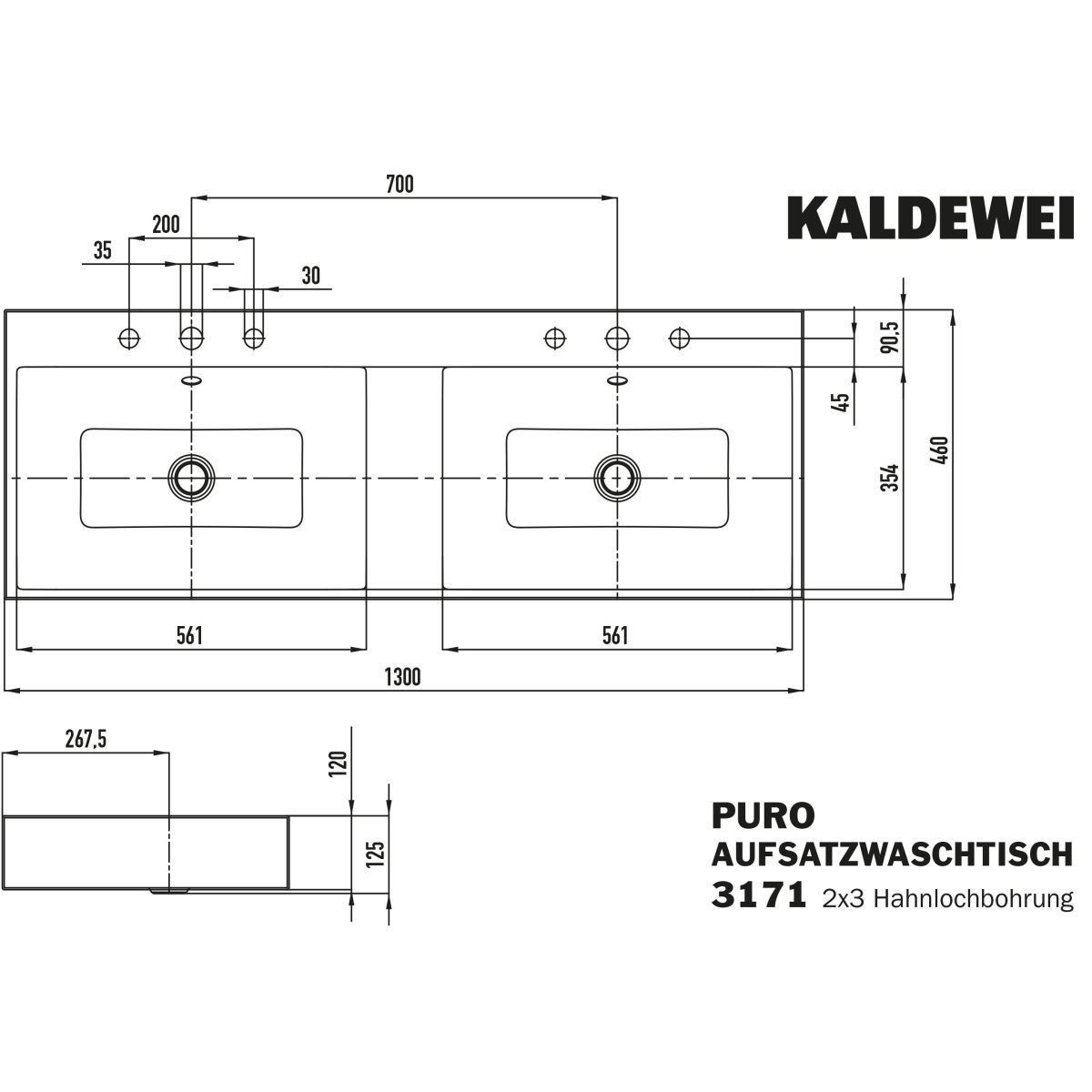 Kaldewei Puro Waschbecken 130x46 cm rechteckig Aufsatzwaschbecken weiß 907206053001