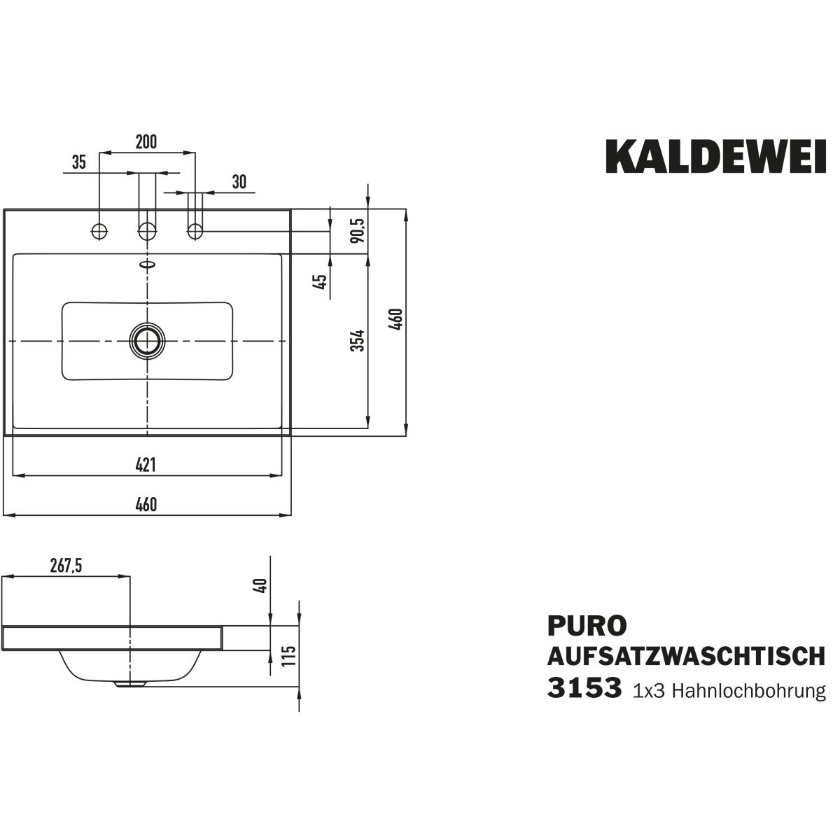 Kaldewei Puro Waschbecken 46x46 cm quadratisch Aufsatzwaschbecken weiß 900306033001