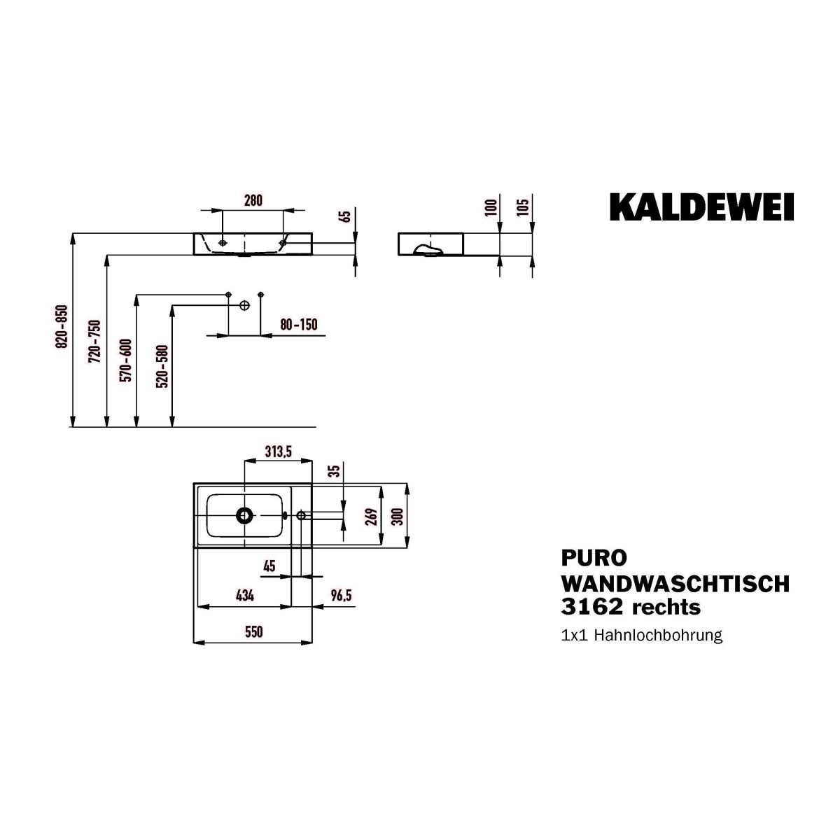 Kaldewei Puro Waschbecken 55x30 cm rechteckig Klassisch weiß 901206393001