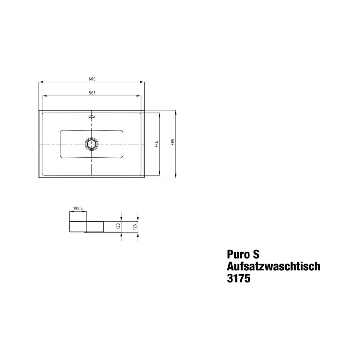 Kaldewei Puro Waschbecken 60x38.5 cm rechteckig Aufsatzwaschbecken weiß 909106003001