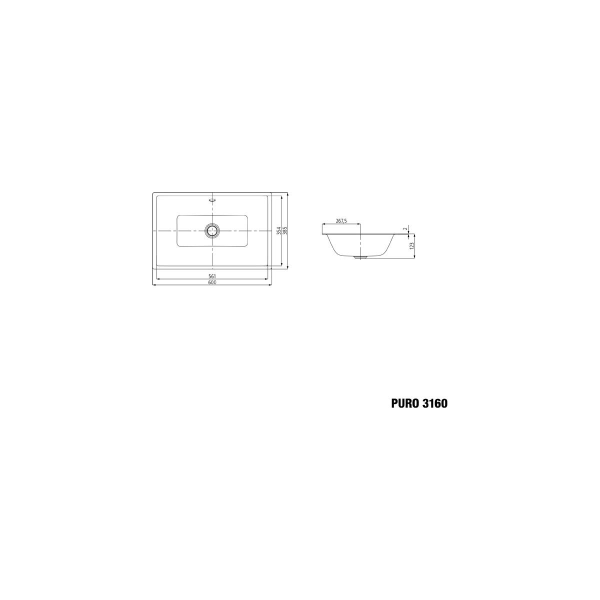 Kaldewei Puro Waschbecken 60x38.5 cm rechteckig Unterbauwaschbecken weiß 901006003711