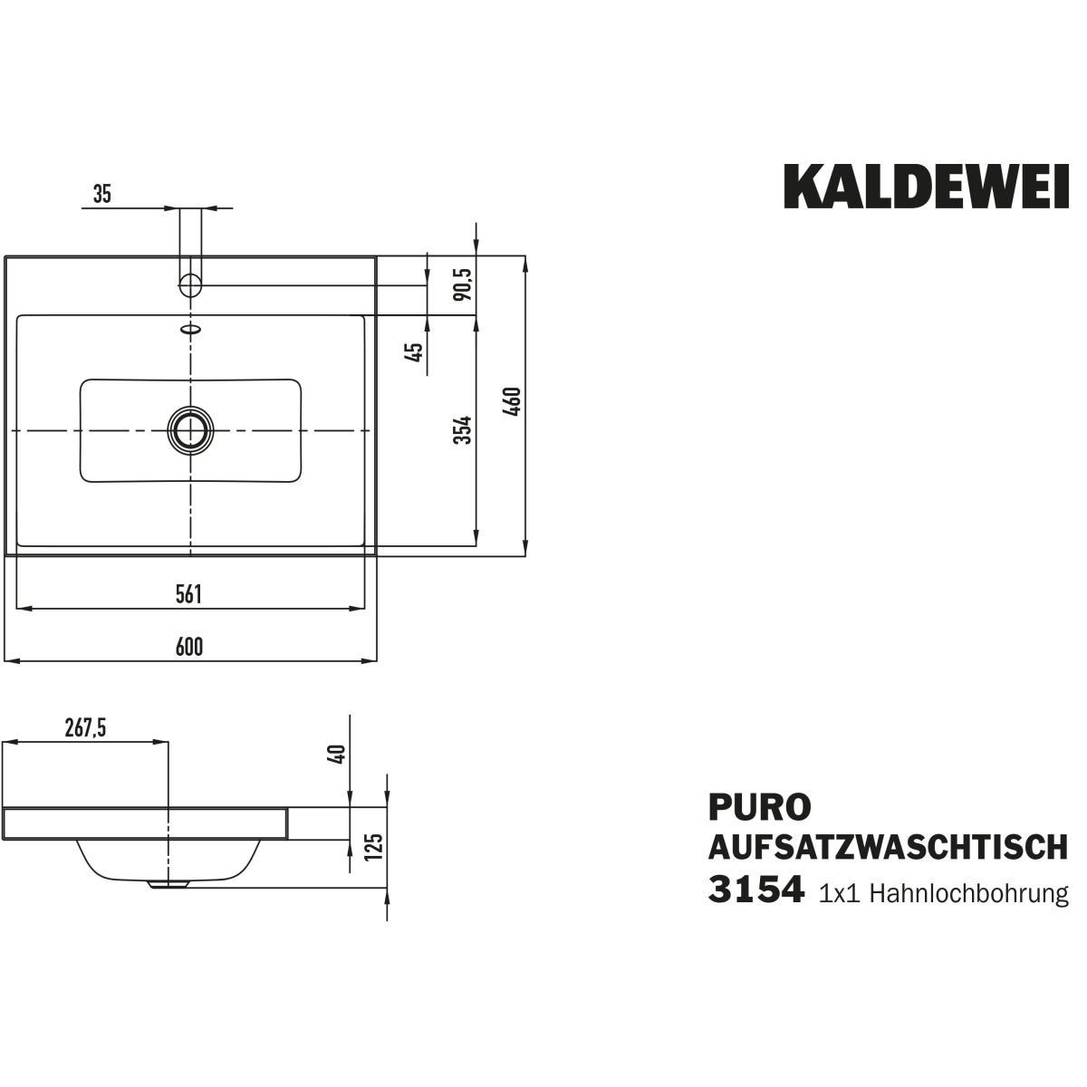 Kaldewei Puro Waschbecken 60x46 cm rechteckig Aufsatzwaschbecken weiß 900406013001