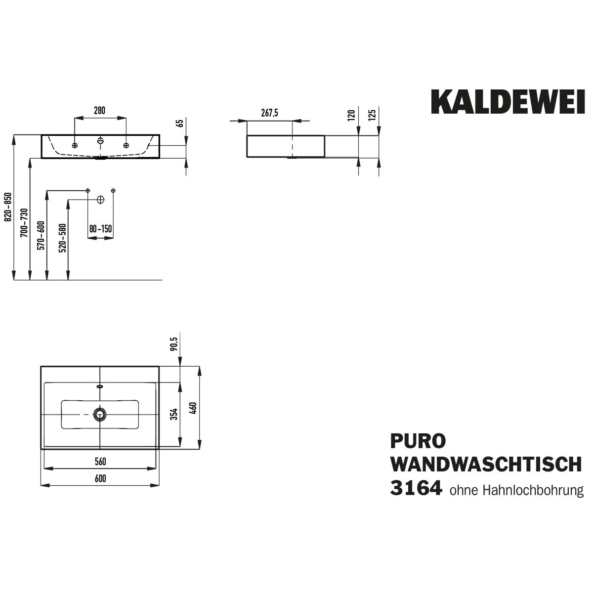 Kaldewei Puro Waschbecken 60x46 cm rechteckig Klassisch weiß 901406003001