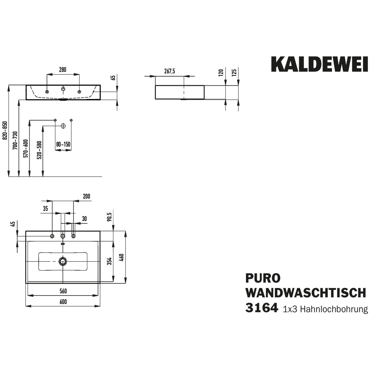 Kaldewei Puro Waschbecken 60x46 cm rechteckig Klassisch weiß 901406033001