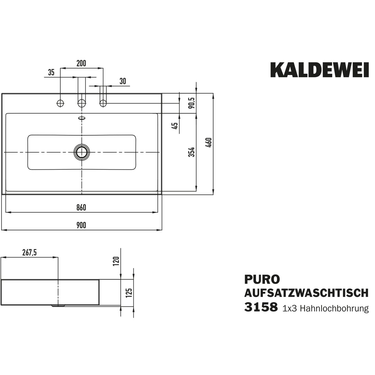 Kaldewei Puro Waschbecken 90x46 cm rechteckig Aufsatzwaschbecken weiß 900806033001