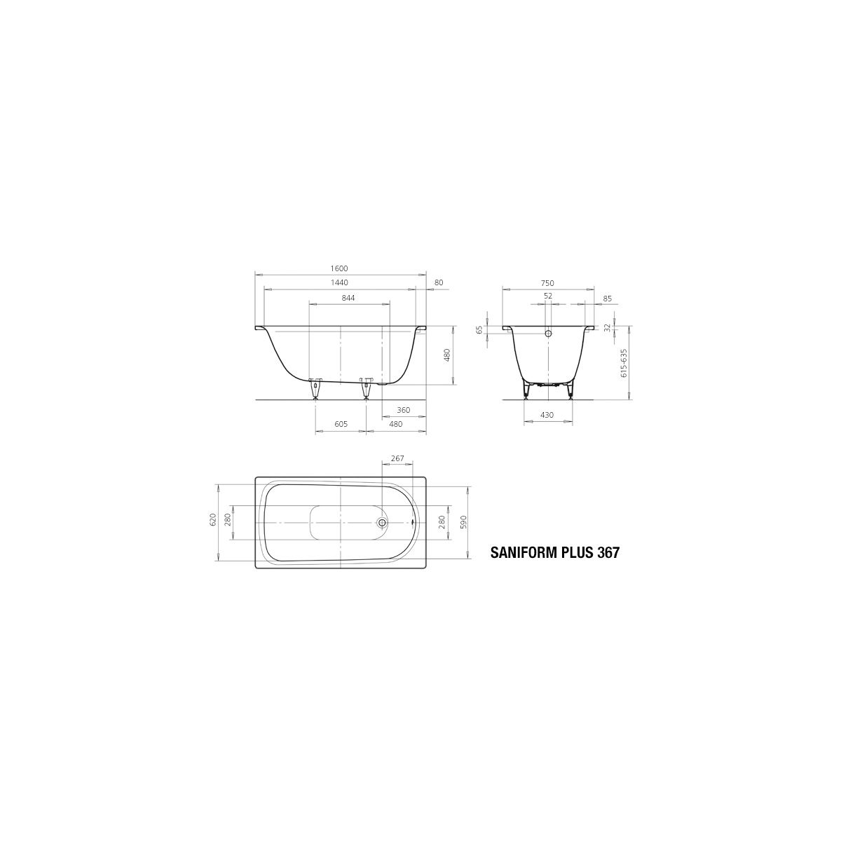 Kaldewei Saniform Plus Rechteckige Badewanne 160x75 cm weiß 113800010001