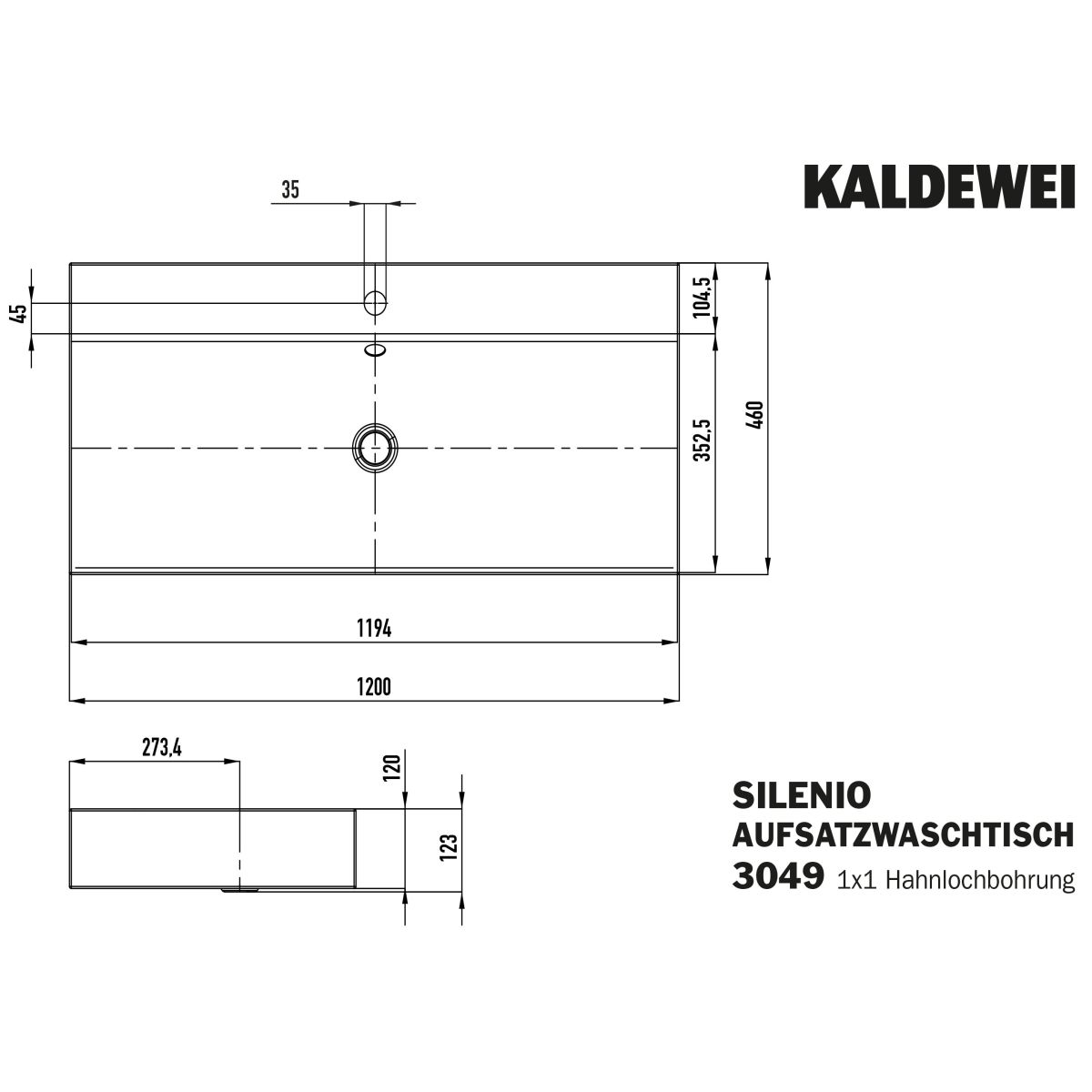 Kaldewei Silenio Waschbecken 120x46 cm rechteckig Aufsatzwaschbecken weiß 906406303001