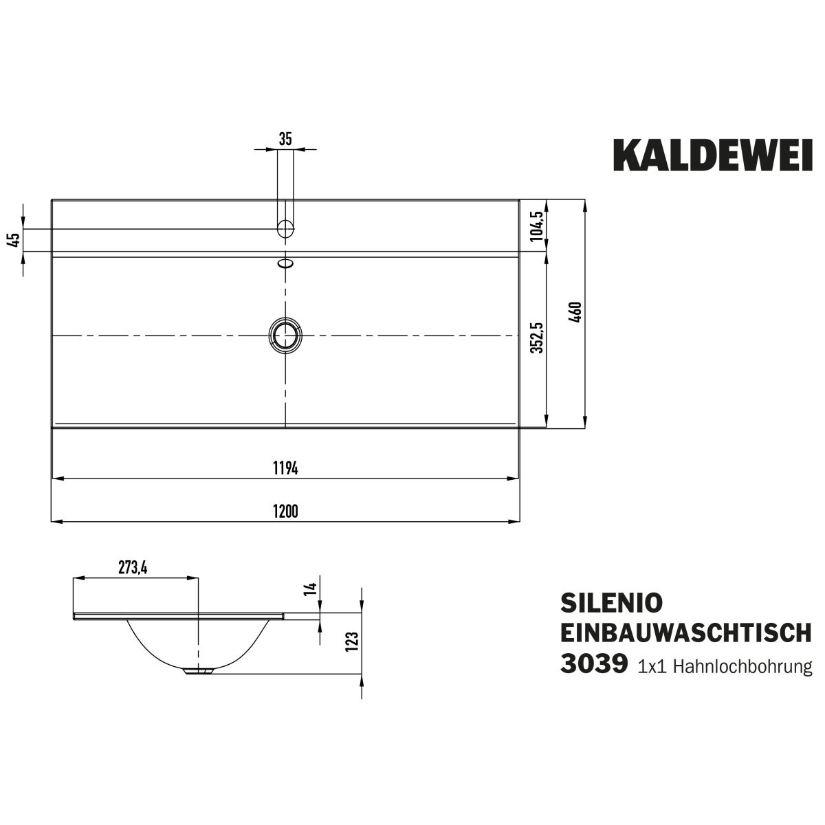 Kaldewei Silenio Waschbecken 120x46 cm rechteckig Einbauwaschbecken weiß 907906303001