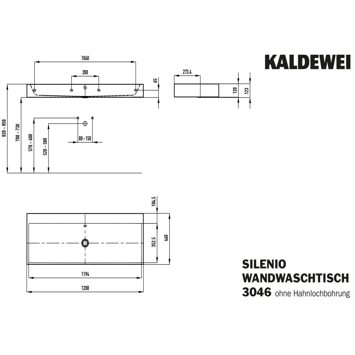 Kaldewei Silenio Waschbecken 120x46 cm rechteckig Klassisch weiß 904506313001