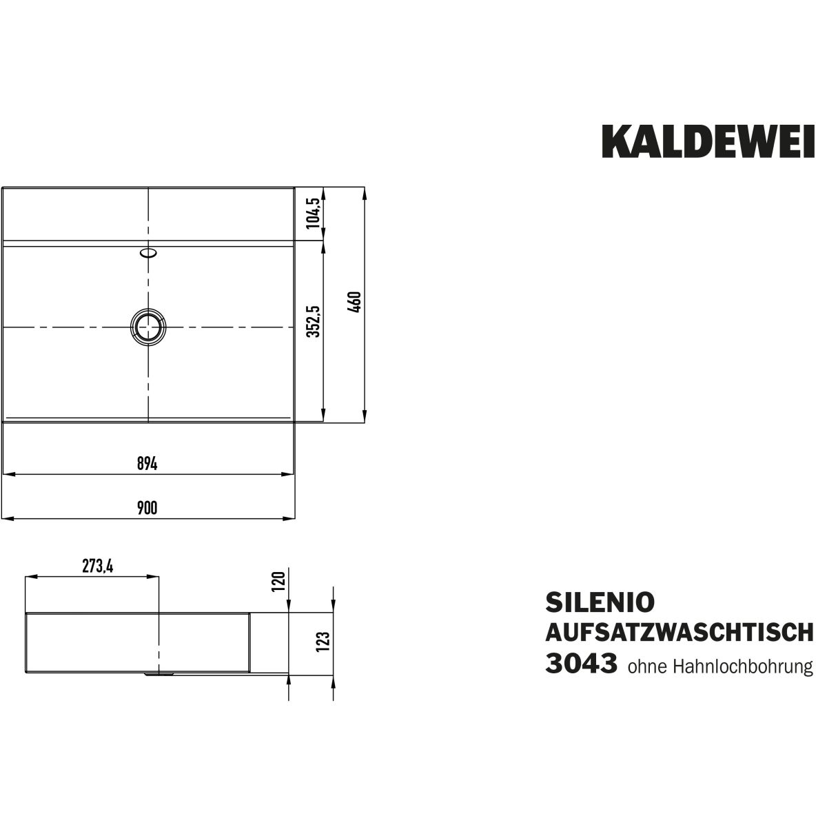 Kaldewei Silenio Waschbecken 90x46 cm rechteckig Aufsatzwaschbecken weiß 904206003001