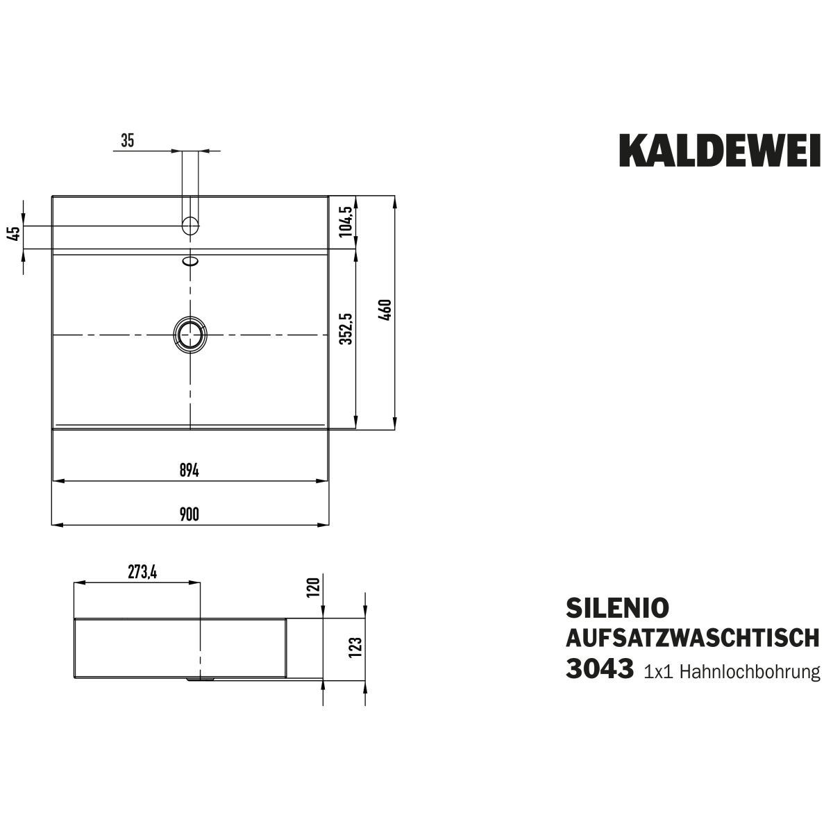 Kaldewei Silenio Waschbecken 90x46 cm rechteckig Aufsatzwaschbecken weiß 904206013001