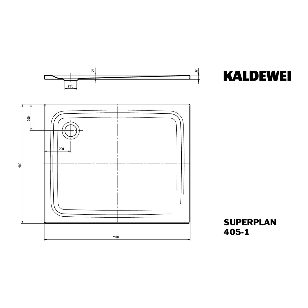 Kaldewei Superplan Rechteckige Duschwanne 110x90 cm weiß 430500010001