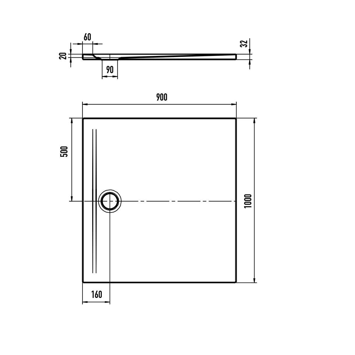 Kaldewei Superplan Zero Rechteckige Duschwanne 100x90 cm weiß 353200010001