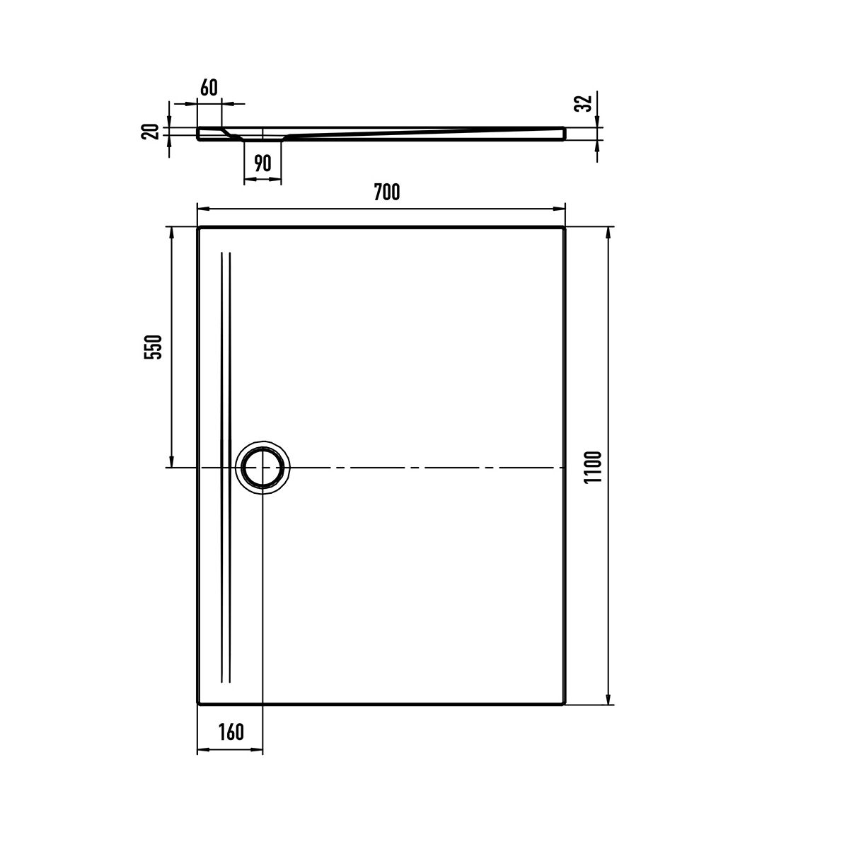 - rechteckige Duschwanne