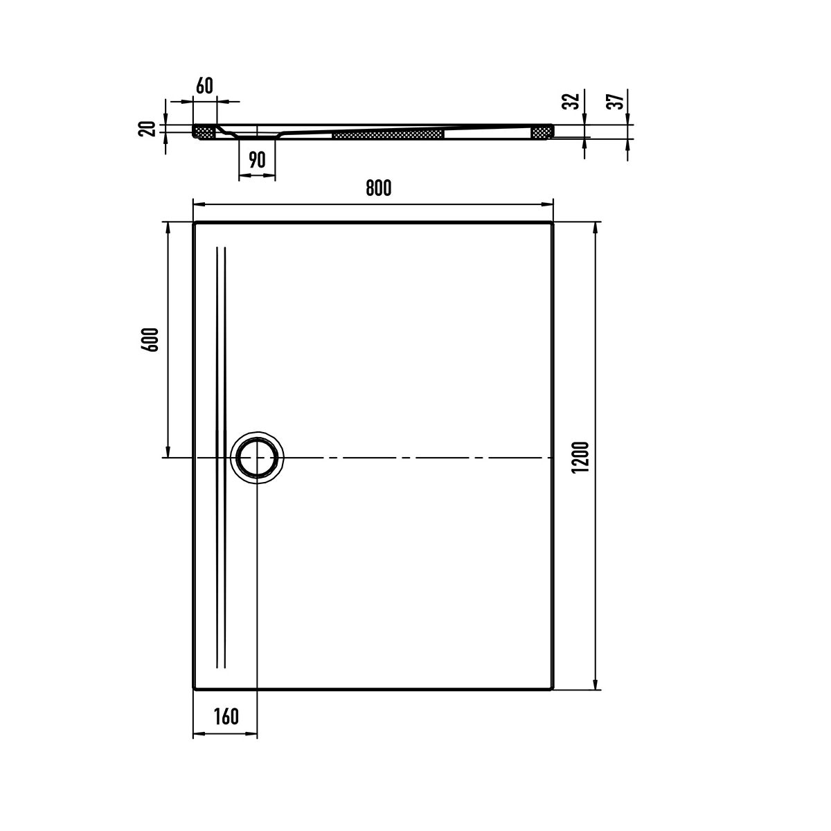 - Gesamthöhe der Duschwanne mit Träger – 3,7 cm