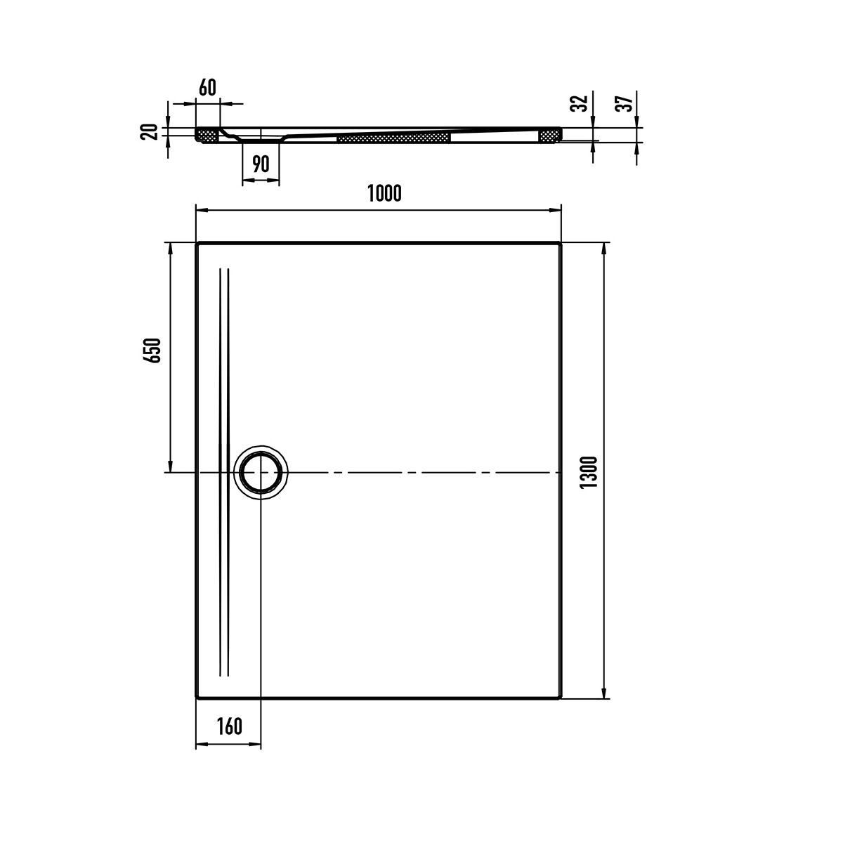 - Gesamthöhe der Duschwanne mit Träger – 3,7 cm