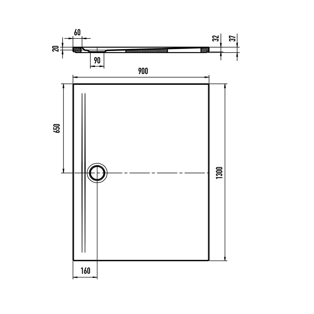 - Gesamthöhe der Duschwanne mit Träger – 3,7 cm