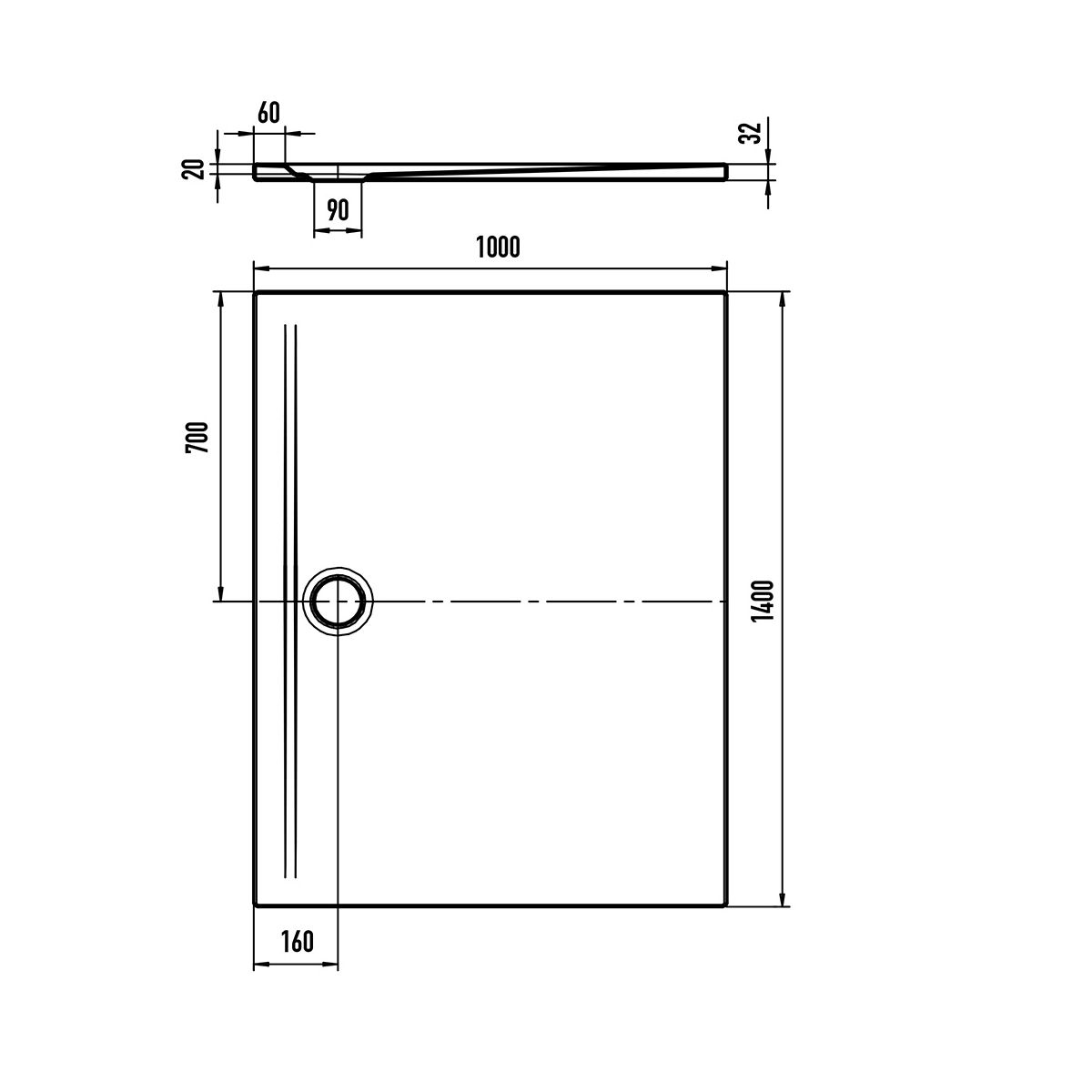 - rechteckige Duschwanne