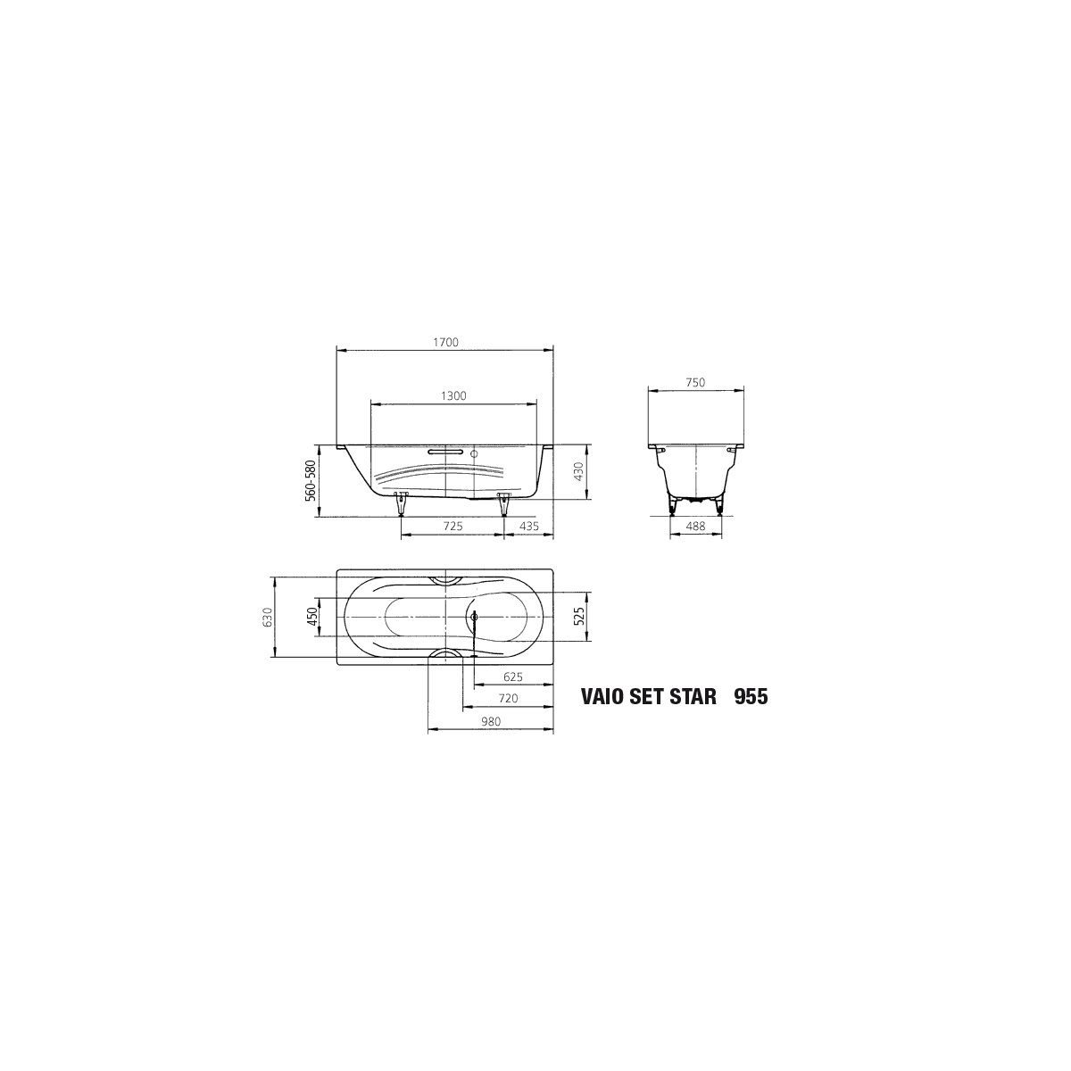 Kaldewei Vaio Set Star Rechteckige Badewanne 170x75 cm weiß 233500010001