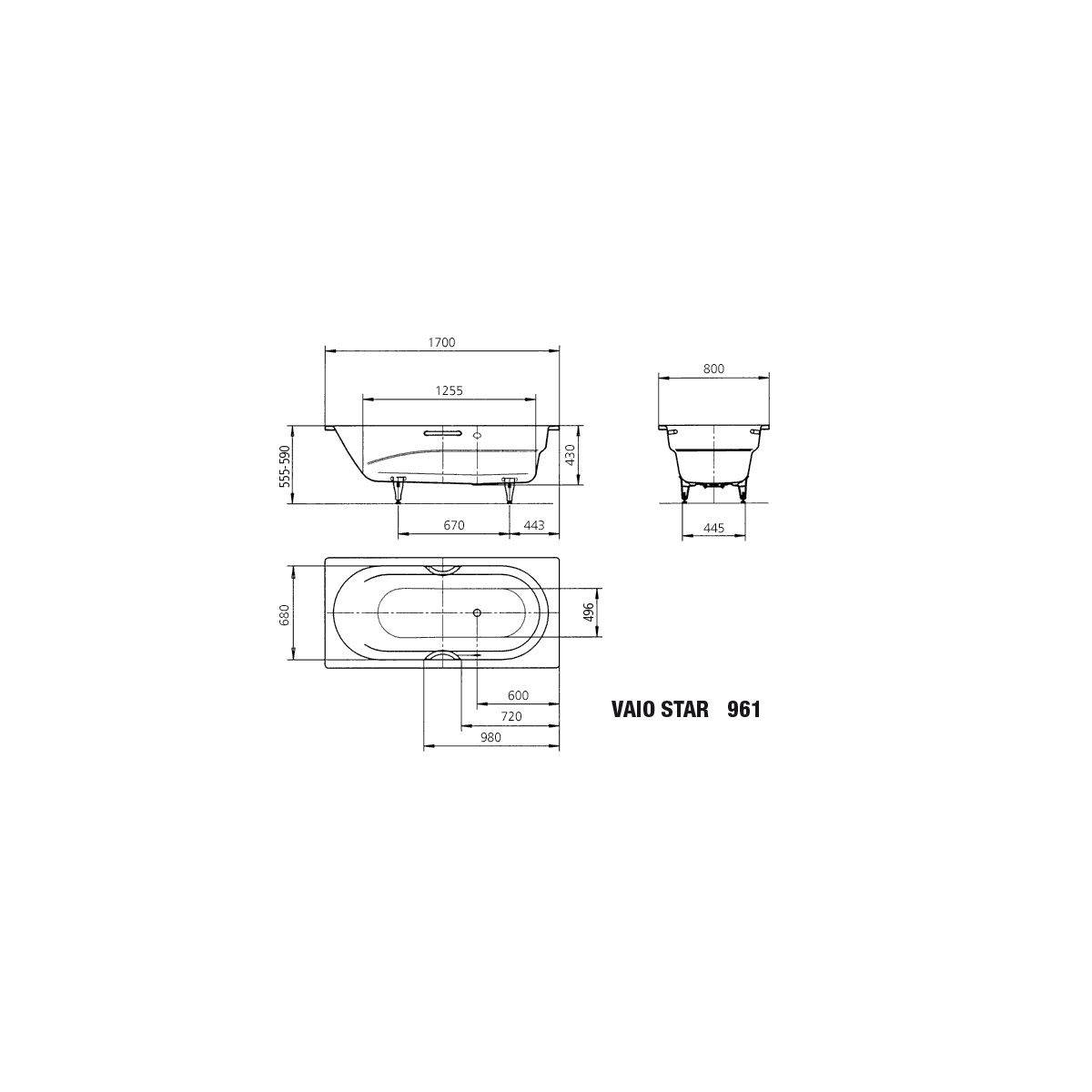 Kaldewei Vaio Star Rechteckige Badewanne 170x80 cm weiß 234100010001