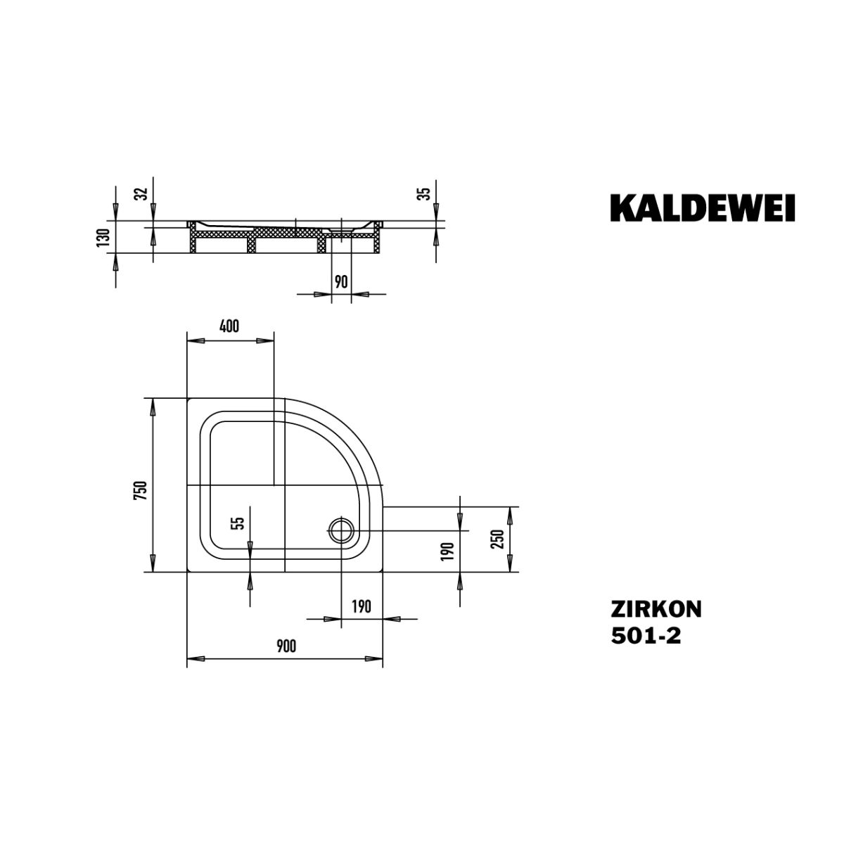 Kaldewei Zirkon Halbrunde Duschwanne 90x75 cm weiß 455548040001