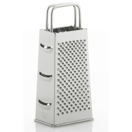 4 verschiedene Reibflächen zur Auswahl. Die Reibe ist 21,5 cm hoch, der obere Griff erleichtert das Reiben. Die Reibe ist spülmaschinenfest.